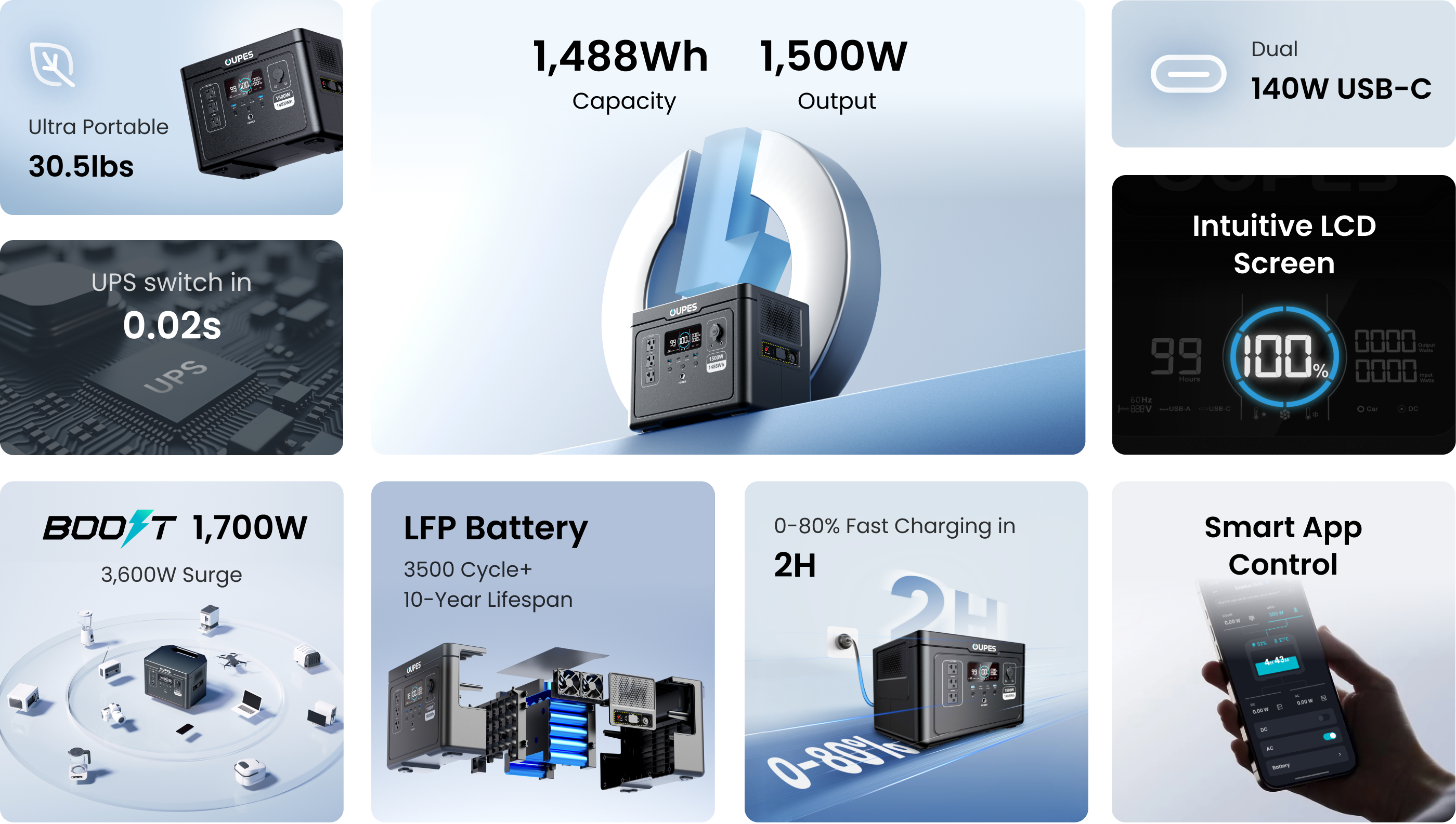 OUPES Exodus 1500 Portable Power Station | 1500W 1488Wh