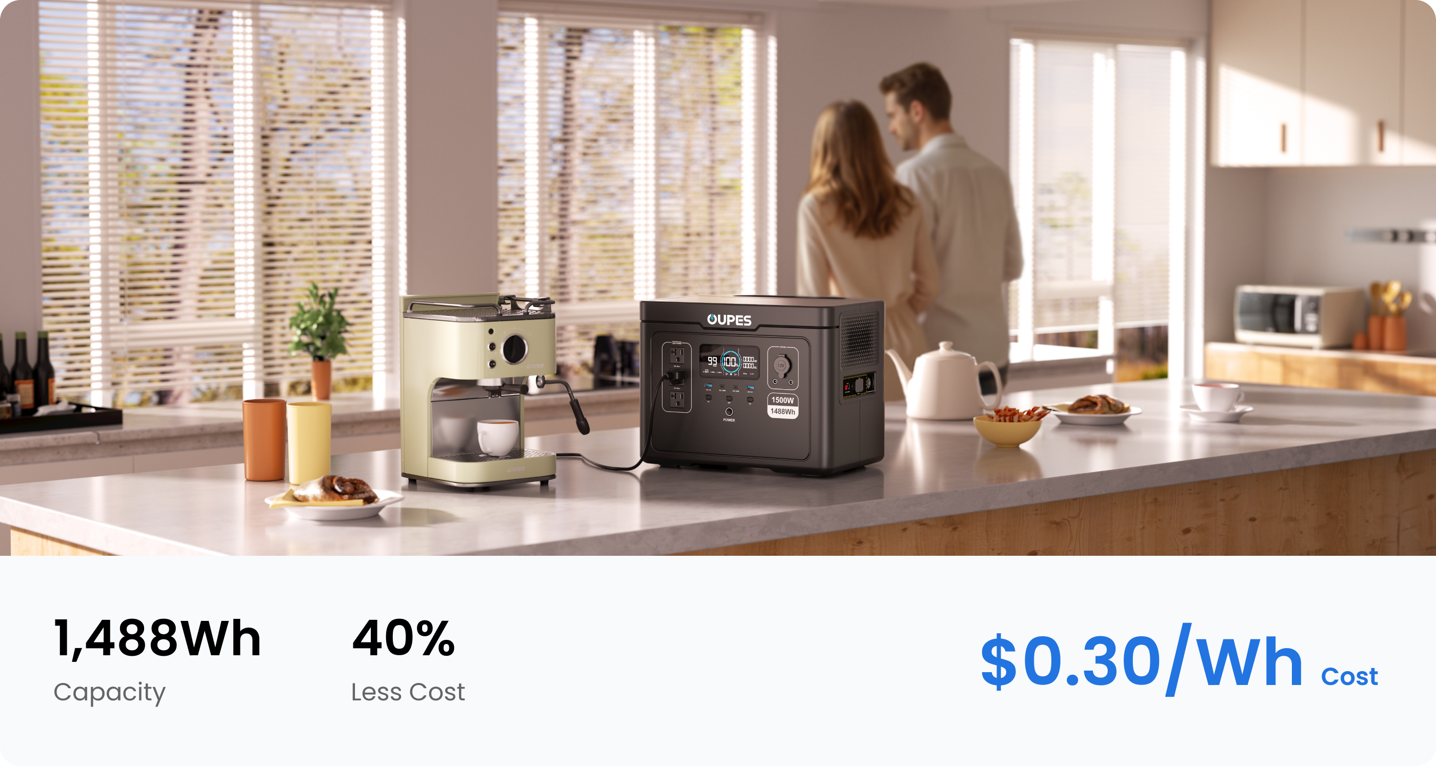 1,488Wh at just $0.30/Wh gives you extended energy for home outages, emergencies, and outdoor adventures. Enjoy reliable energy whether you’re indoors or exploring the great outdoors.