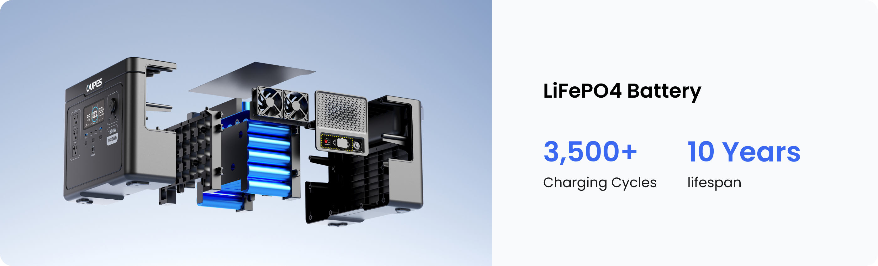 • LiFePO4 Battery with 3,500+ Life Cycles to 80%