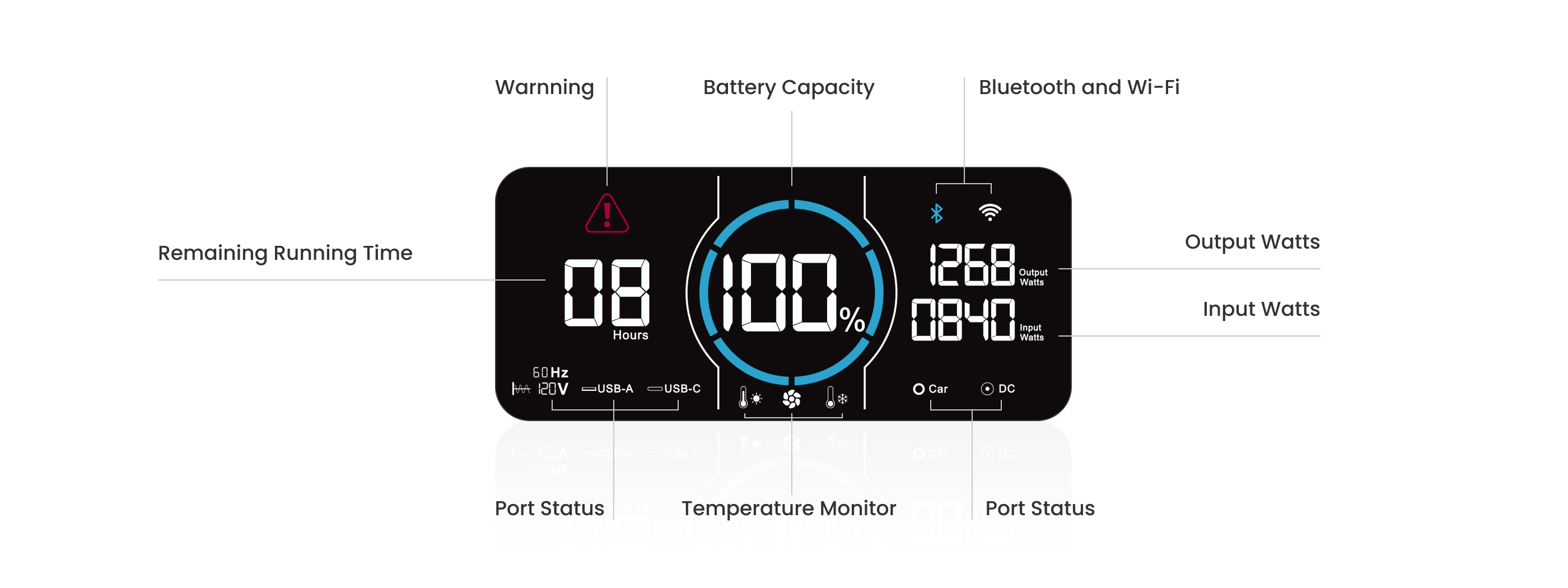 Monitor your power station effortlessly with a crisp, HD screen that delivers real-time status updates at a glance.