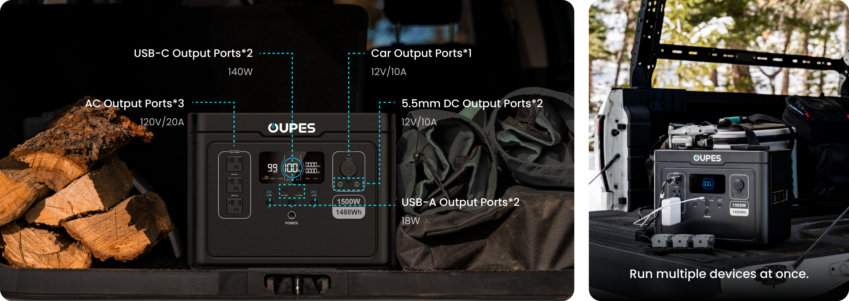 • USB-A Output 2*USB-A (18W Max)
