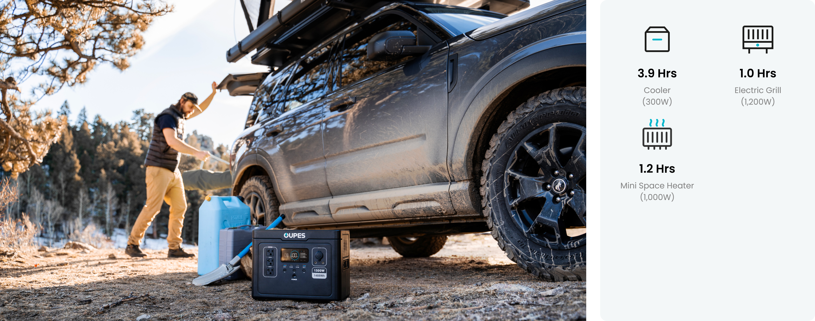 • Exodus 1500: 1,488Wh Capacity | 1,500W AC Pure Sine Wave Inverter (1,700W Boost Mode)